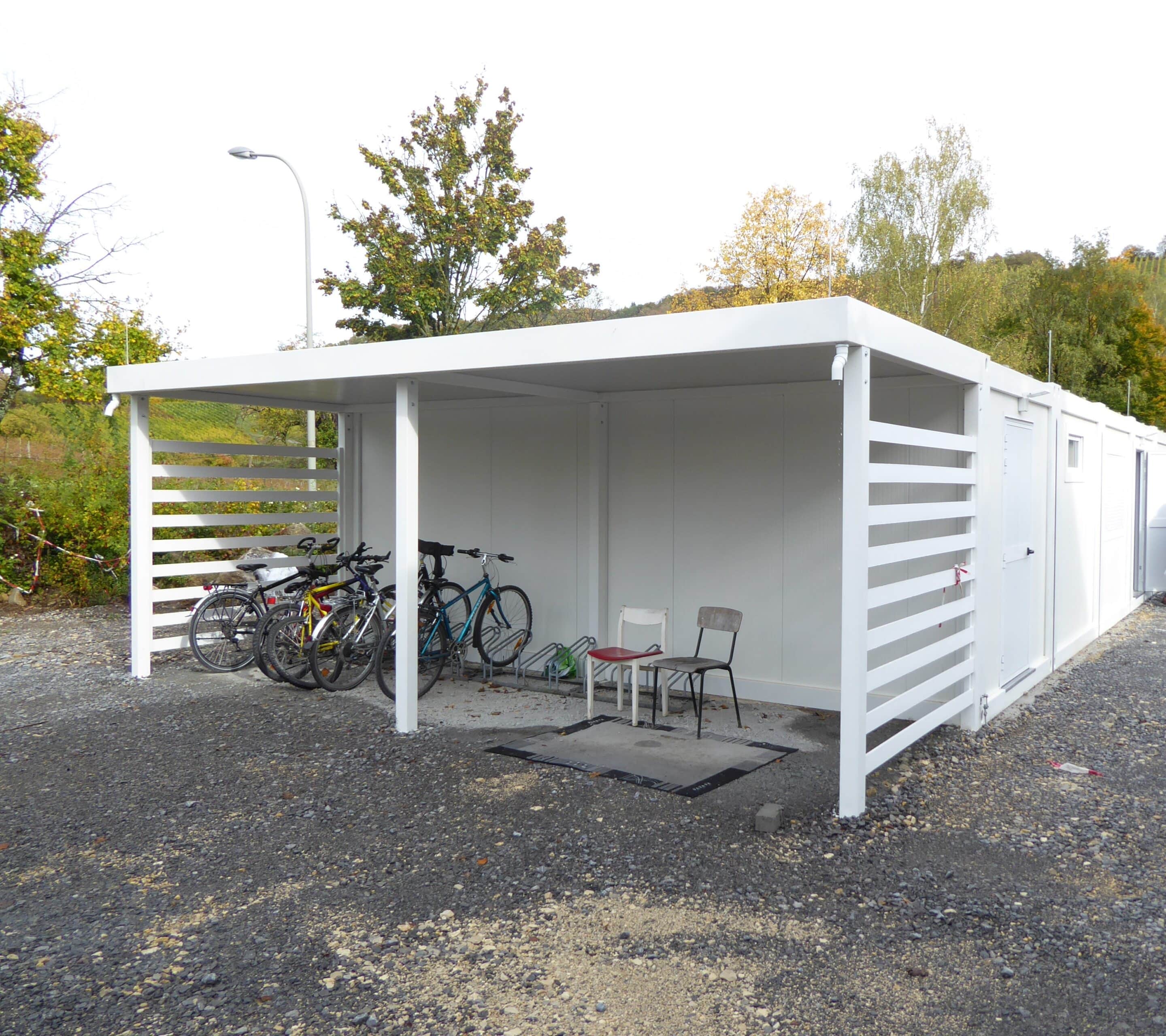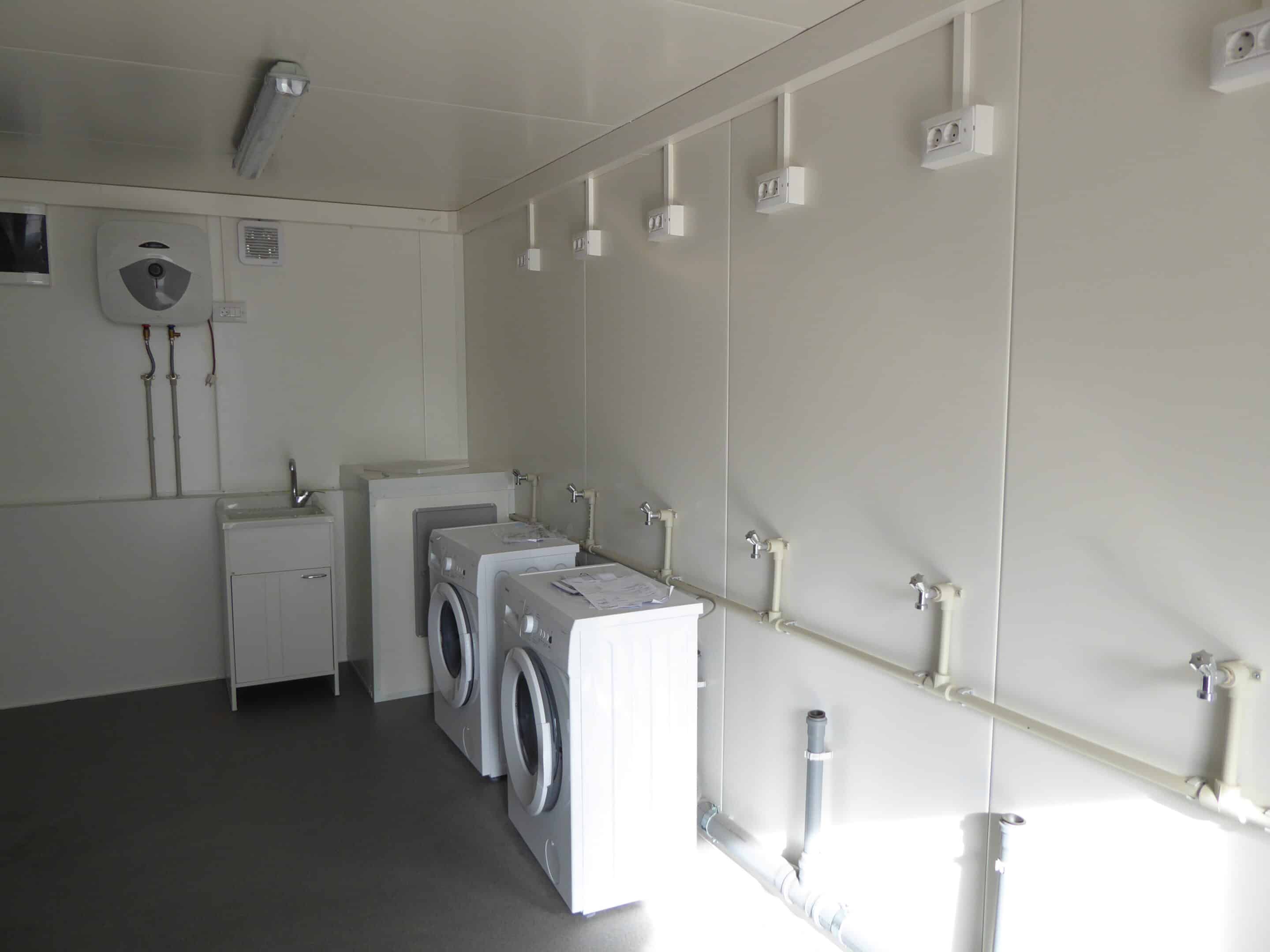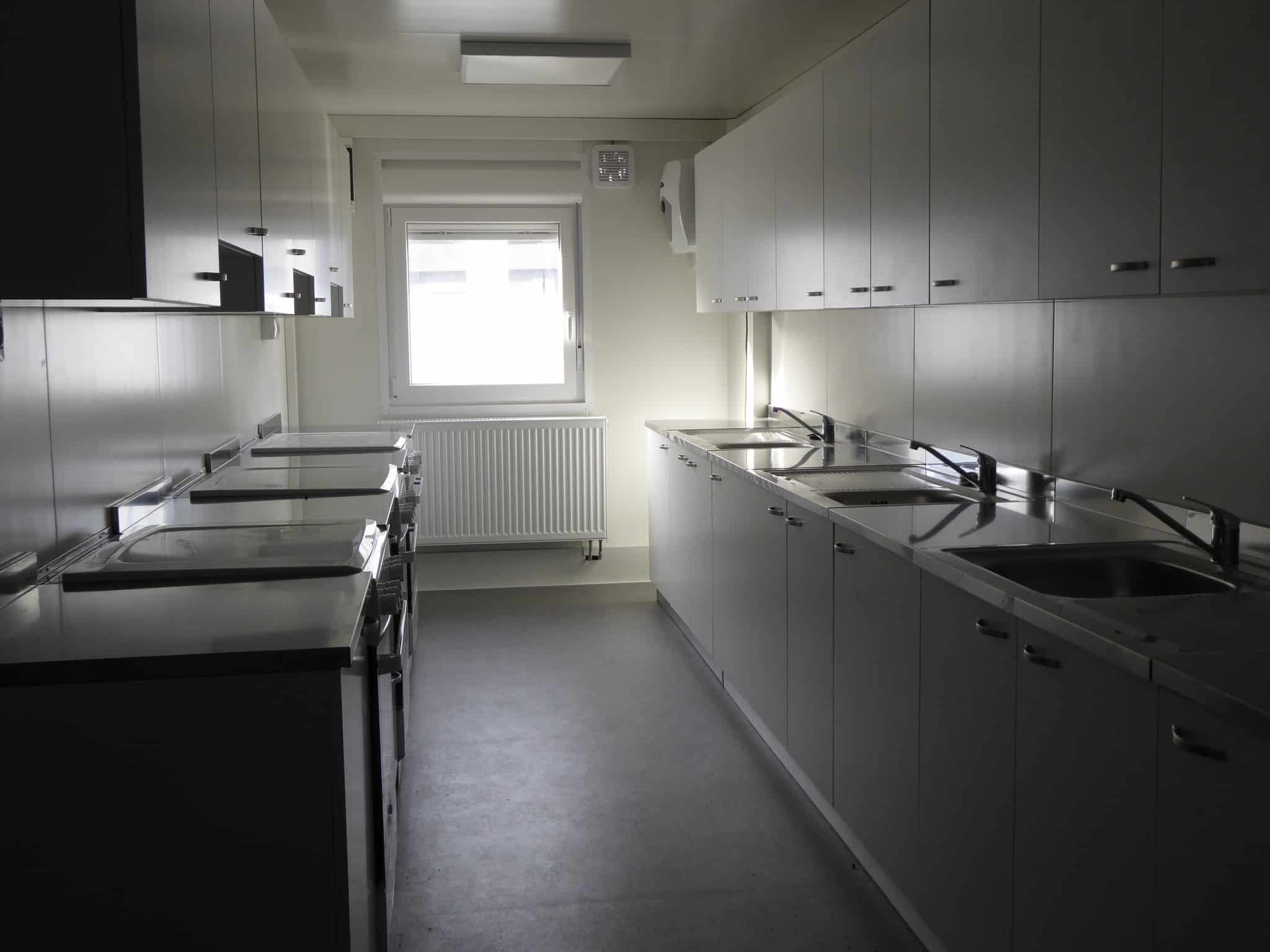 Edificio sviluppato su due livelli, destinato all’alloggio temporaneo dei profughi a Korb, Germania. Dimensioni esterne 31.694×15.020mm, completo di scale per l’accesso al primo piano e struttura antisismica. Ciascun piano è composto da 21 unità abitative, sala ricreazione con cucina e due bagni. In corrispondenza degli alloggi è stata assemblata una struttura formata da sei container, adibita al deposito delle biciclette, locale caldaia e lavanderia.